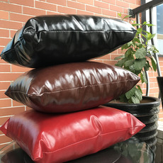 特惠高档PU皮质沙发靠垫纯色靠枕枕套办公室抱枕汽车腰垫含芯包邮
