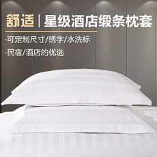【枕套一对包邮】酒店宾馆60支贡缎提花全棉纯棉白色纯色单人枕套