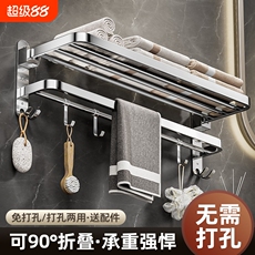 304不锈钢折叠毛巾架免打孔浴巾架卫生间浴室厕所毛巾挂架置物架
