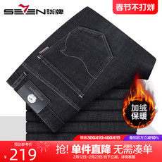 【加绒含绵羊毛】柒牌加厚黑色牛仔裤2025冬季新款男士直筒休闲裤