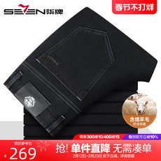 【含羊毛】柒牌加厚黑色牛仔裤2025秋冬新款商务休闲弹力直筒长裤