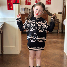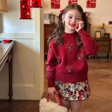 栀了成长记童装女童红色洋气新年毛衣新款儿童宝宝卡通过年针织衫