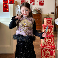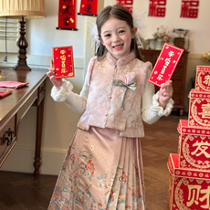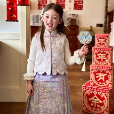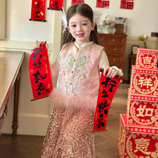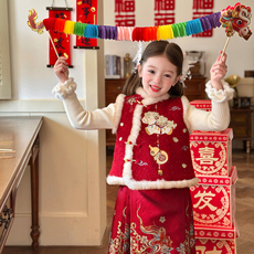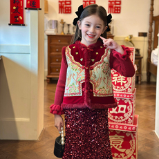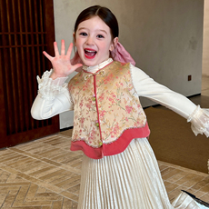 栀了成长记女童装新年马甲套装2025冬季儿童国风甜美夹棉无袖上衣