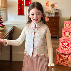栀了成长记女童装新中式马甲套装2025冬季儿童夹棉国风拜年服上衣