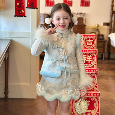 栀了成长记童装女童新中式夹棉旗袍裙2025冬季儿童国风提花连衣裙