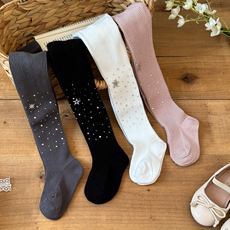 栀了成长记童装女童坑条烫钻连裤袜秋季新款儿童洋气弹力打底裤袜