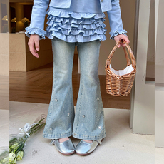 栀了成长记童装女童时髦亮晶晶加绒牛仔裤秋冬百搭裤子儿童喇叭裤