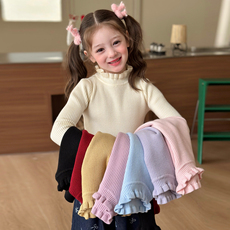 栀了成长记童装女童木耳边百搭弹力打底衫春秋款儿童时髦打底上衣