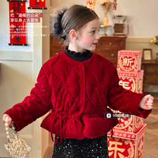 栀了成长记童装女童新年红色大衣2025冬季儿童拜年服夹棉保暖外套