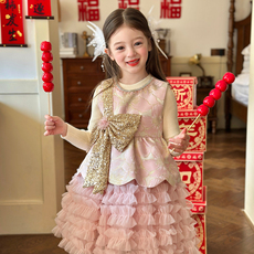 栀了成长记童装女童甜美亮片背心裙2025冬季儿童加绒蝴蝶结连衣裙