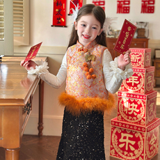 栀了成长记童装女童新中式夹棉旗袍裙2025冬季儿童国风甜美背心裙