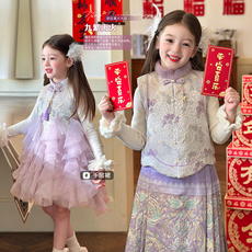 栀了成长记童装女童国风拜年服套装2025冬季儿童新中式加厚两件套