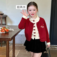 栀了成长记童装女童小香风红色亮片秋冬毛衣儿童宝宝针织开衫上衣