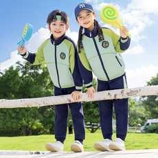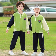 学院风绿色棒球服校服套装中小学生秋冬新儿童一年级班服幼儿园服