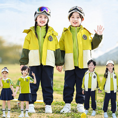 绿色儿童冲锋衣校服套装学院风小学生班服秋冬装七件套幼儿园园服