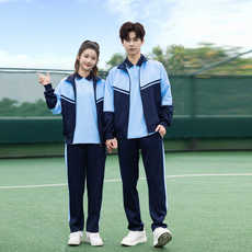 春秋季蓝色班服套装初中生高中学生运动服装学院风开衫校服三件套