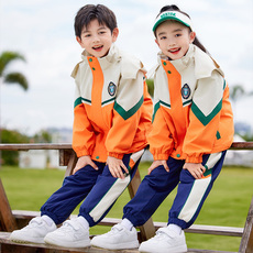学院风橙色校服套装小学生夏季新款老师男女儿童班服纯棉幼儿园服