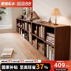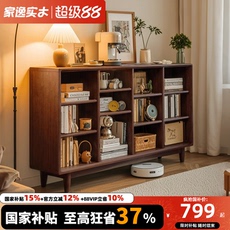实木书柜储物柜一体靠墙客厅矮柜落地柜书架置物架胡桃木格子柜子