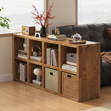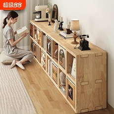 实木书架落地置物架家用简易书柜一体靠墙格子现代简约矮柜置物柜