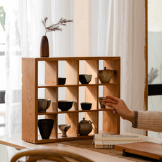 无意实木茶杯格子架九宫格架杯子置物架黑胡桃木多宝格茶具博古架