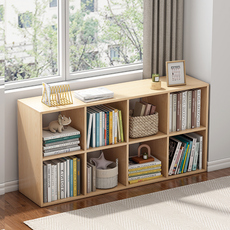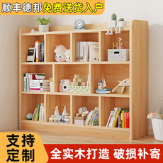 实木书架置物架落地儿童家用收纳储物柜子格子展示矮书柜一体靠墙