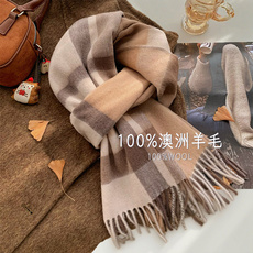 100%澳洲wool纯羊毛格子围巾女冬季礼盒送人高级感2025新款围脖男