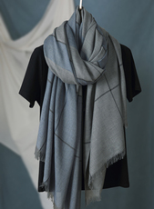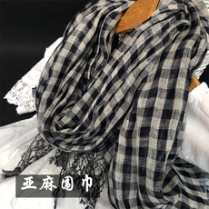 帅气逼人!禁欲灰雾霾蓝中性色拼接格子棉麻围巾大尺寸薄款四季