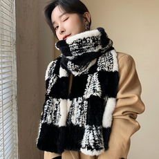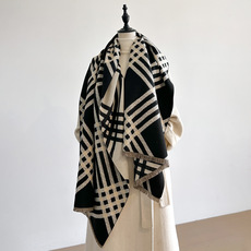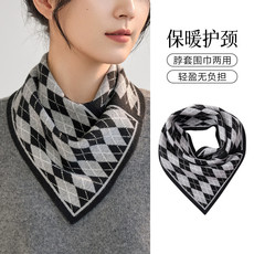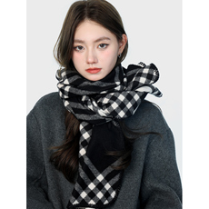秋冬新款仿羊绒黑白格子围巾女冬季加厚保暖休闲百搭针织围脖披肩