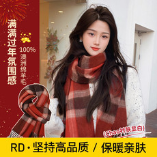 羊毛围巾女秋冬季红色英伦格子女冬天高级感情侣礼物围脖洋气新年