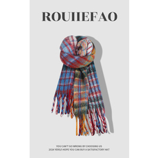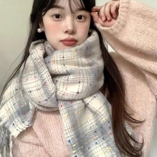 YAOLI~清冷海冰蓝!含羊毛保暖格子流苏围巾女秋冬防寒围脖韩