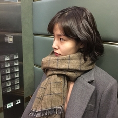 宏达 格纹保暖秋冬防风围脖女士小围巾护颈脖套简约韩系格子围巾