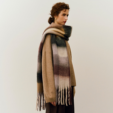 纯羊毛围巾女2025秋冬新款美拉德配色格子韩系时尚简约大气氛围感