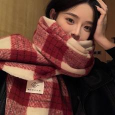 新款围巾女冬季韩版高级感百搭红色格子围脖学生情侣加厚保暖披肩