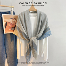 新款棉麻格子三角巾女简约百搭空调房装饰护颈防晒小领巾披肩围巾
