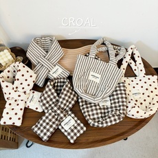 CROAL韩系儿童围巾包包套装纯棉ins风秋冬男女童格子条纹交叉围脖