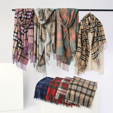 经典氛围感复古巴巴格子流苏仿羊绒围巾女24新款百搭保暖披肩围脖