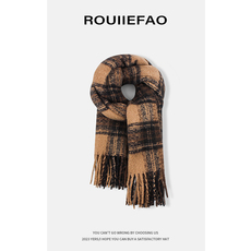 围巾女秋冬韩版仿羊绒彩色格子流苏拉毛保暖学生围脖加厚网红披肩