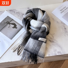 围巾日单PO*尾货贵牌刺绣防静电格子加厚小个子冬季男女保暖少女