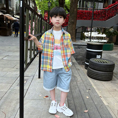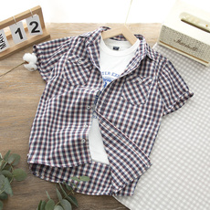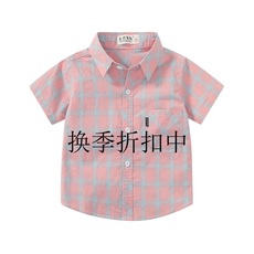 打折男童短袖衬衫纯棉童装中大童上衣宝宝儿童格子衬衣洋气半袖