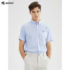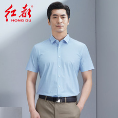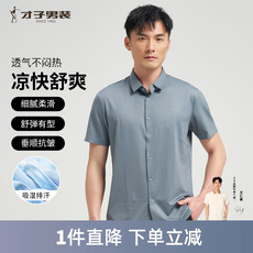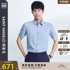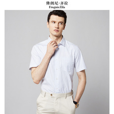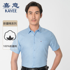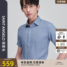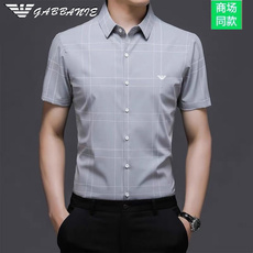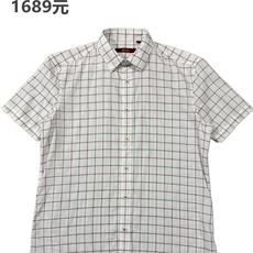 报喜鸟商务正装短袖衬衫百搭上衣时尚打底格子桑蚕丝衬衣中八领男