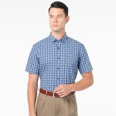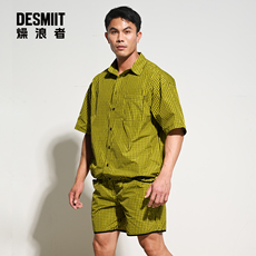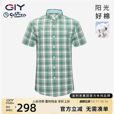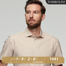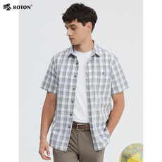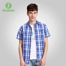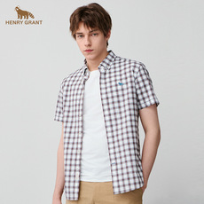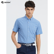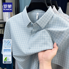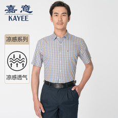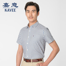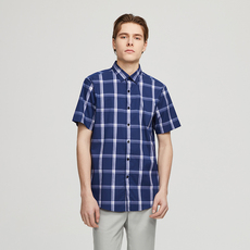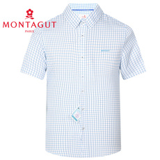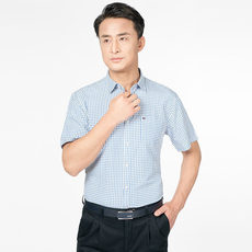 [莫代尔/免烫抗皱]梦特娇夏季男士短袖衬衫格子休闲翻领衬衣凉感J
