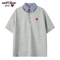 查尔斯桃心 假俩件格子Polo衬衫男2025年夏季新款休闲百搭短袖t恤