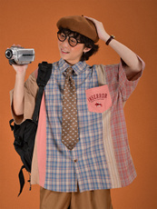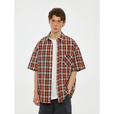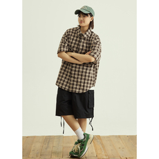CountryMoment日系CityBoy格纹短袖衬衫男女复古宽松休闲格子衬衣