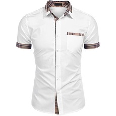 MENHARDUM/蔓哈顿夏季商务男士格子衬衫经典格纹时尚短袖衬衣