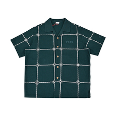 美式复古椰树格子短袖衬衫男女夏季潮牌休闲宽松情侣休闲上衣外套
