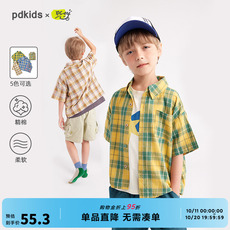 【小童】虾酱麻麻男童短袖衬衫2025新款宝宝格子上衣纯棉儿童衬衣