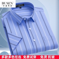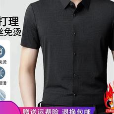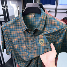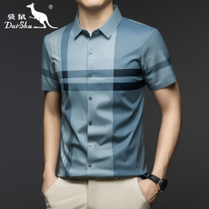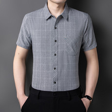 袋鼠夏季新款格子衬衫男短袖冰丝薄款中年休闲寸衫免烫爸爸装衬衣