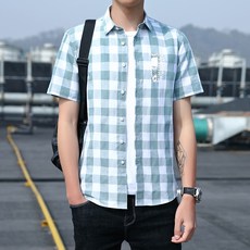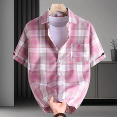 夏季新款格子男士短袖衬衫韩版修身潮流半袖衬衣薄款学生男装上衣