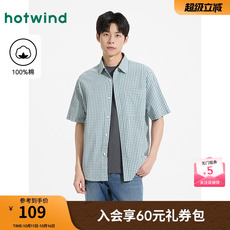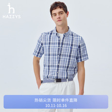 Hazzys哈吉斯春夏新品男士棉麻混纺格子短袖衬衫商务休闲上衣衬衣