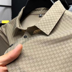 格子提花轻奢高端冰丝t恤男短袖衬衫翻领中青年装宽松polo衫夏季